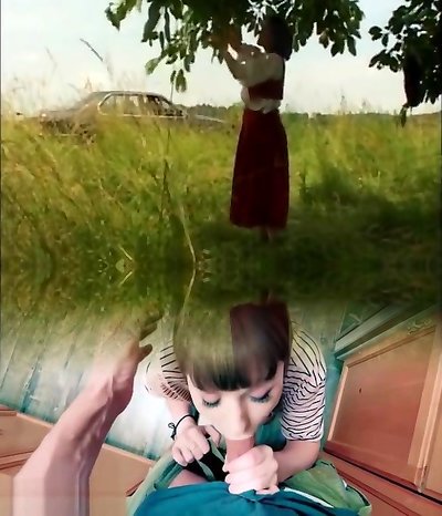 Attractive buxomy experienced girl gives a magic blowjob
